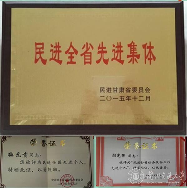 12月19日,民进甘肃省委员会在西北宾馆举行了“庆祝中国民主促进会成立70周年”大会,我校民进副主委赵峰教授参加了大会。 会上,民进甘肃省委宣读了民进中央关于表彰全国先进集体和先进个人的决定。我校民进主委梅元贵教授被授予全国“先进个人”荣誉称号。大会还表彰了一批民进全省先进集体和先进个人。我校民进委员会获得“先进集体”荣誉称号。我校民进委员会委员闫光辉教授获得“民进全省先进个人”荣誉称号。