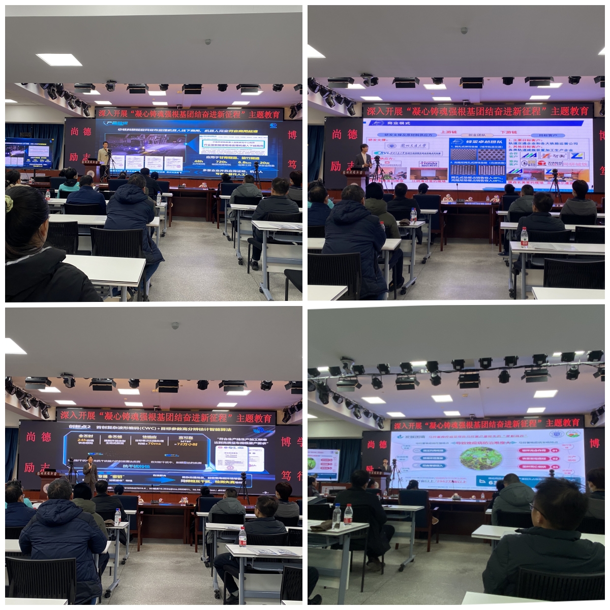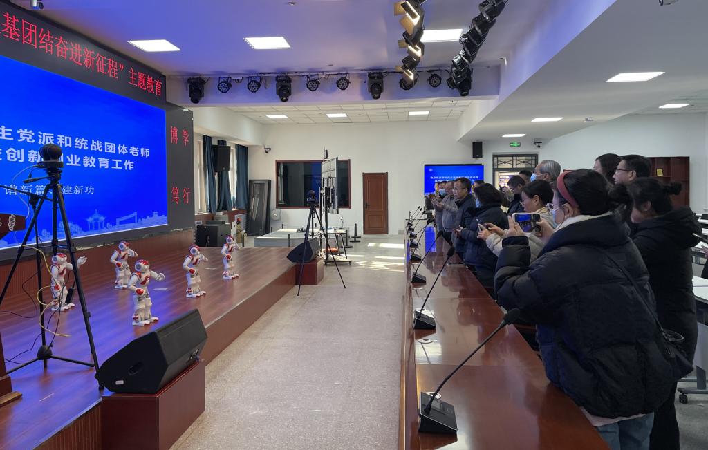 创新创业学院负责人详细介绍了学校创新创业教育的历史沿革、发展现状、取得标志性成果和2024年创新大赛规划情况。统战成员观看了机器人项目展演、获中国国际大学生创新大赛(2023)金奖、银奖的4个项目团队路演展示。