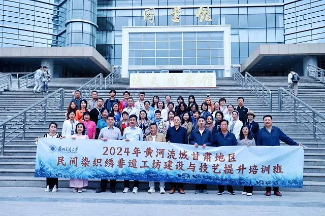 兰州交通大学自2017年入选中国非遗研培参与院校以来,充分发挥自身在传统技艺尤其是染缬技艺方面的科研与艺术创作优势,累计举办10期以传统染缬技艺为核心的非遗研培活动,获得参培学员的充分肯定。自2023年起,兰州交通大学开展以“黄河流域甘肃地区民间染织绣技艺提升”为主题的巡回研培活动,计划在5年时间内,以黄河流域甘肃东部地区的民间染织绣技艺为重点开展非遗研培活动。