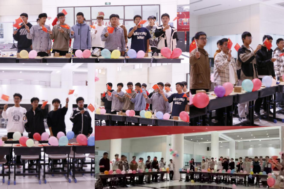 歌曲,钢琴、卡祖笛演奏,舞蹈串烧和纸牌魔术精彩纷呈。节目之后的游戏环节热闹非凡。“谁是卧底”和“加字游戏”趣味十足,背对背夹球游戏充分展现团队协作的魅力。游戏过程中充满欢声笑语,不仅活跃了气氛,更让团员们在轻松的氛围中感受国庆的喜悦,增强了团队的凝聚力。活动尾声,全体学生齐声合唱《我和我的祖国》更是将活动气氛推向高潮,激昂的歌声回荡在整个活动室,也传递着大家对党和祖国的真挚情感。