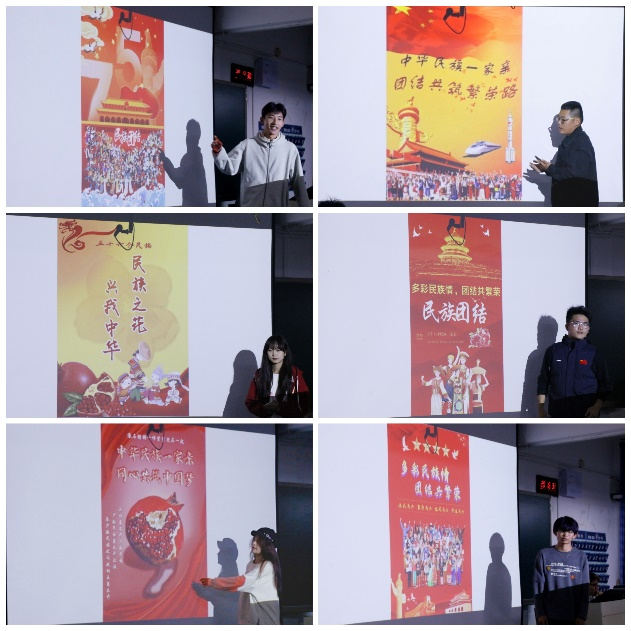 活动中,参赛选手围绕设计理念、色彩搭配以及排版布局等对自己的海报进行讲解。评委们聆听讲解后,依据严格的标准进行打分,并从中评选出获奖作品。随后,学工办主任黄俊涛做了民族团结进步专题教育宣讲。他的报告深入解读党的民族政策,强调民族团结是国家稳定、社会和谐的基石;讲述各民族文化交流与融合的精彩历程,分享民族团结的先进事迹,激励大家以榜样为力量;倡导尊重各民族的文化差异和风俗习惯,不同民族的同学间要积极交流交往、互帮互助。