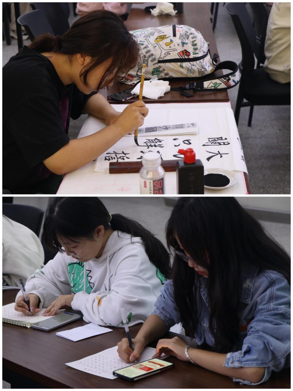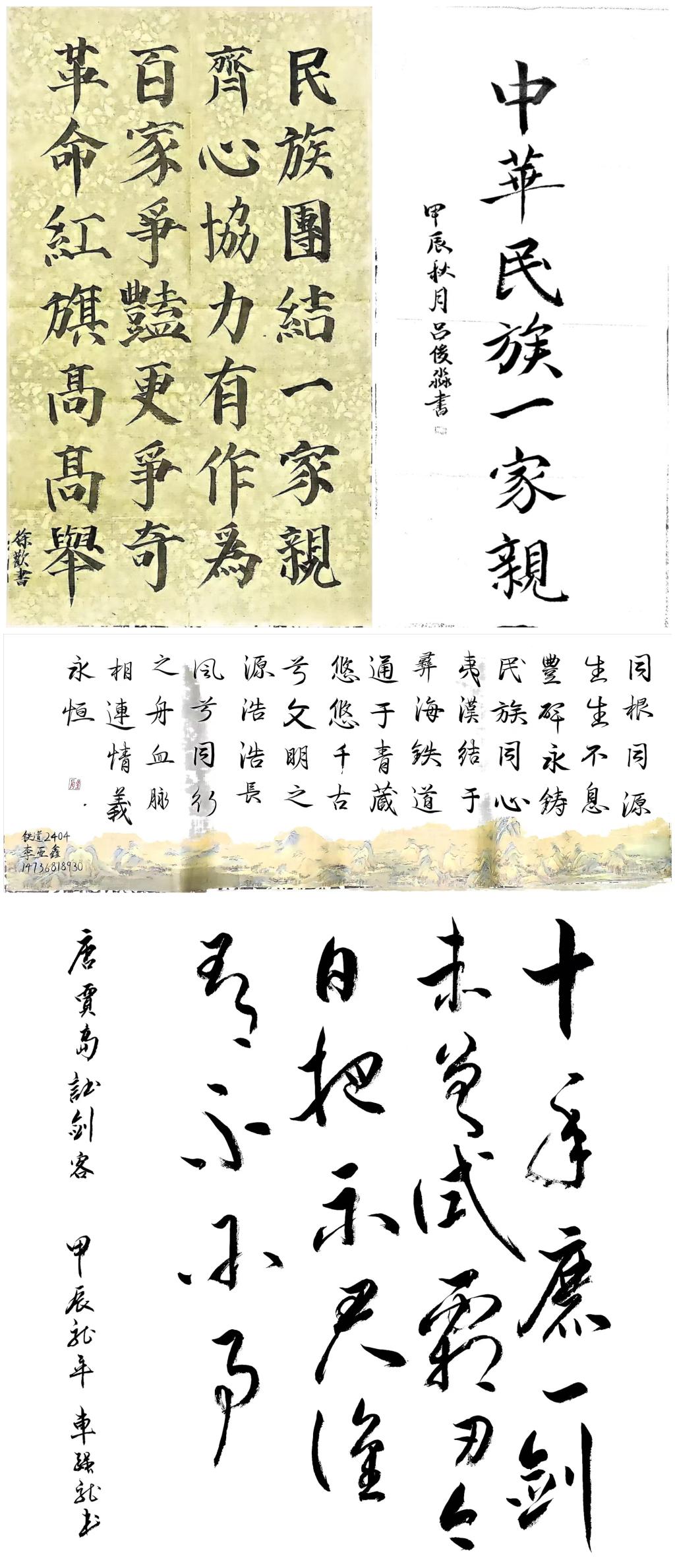 20余名书法爱好者来到现场参加比赛。现场创作的作品涵盖了篆、隶、楷、行、草等多种书体,内容丰富多彩,既有对古诗词中民族团结精神的现代诠释,也有原创诗词歌赋展现对多民族国家未来的美好憧憬。每一幅作品都饱含作者对中华民族大家庭的深厚情感和对民族团结进步事业的坚定信念。参赛同学纷纷表示,能够用书法这一独特方式表达对民族团结的热爱和支持,感到非常荣幸和自豪。他们希望通过自己的作品能够激励更多同学参与到民族团结的实践中来,共同为建设和谐校园贡献力量。