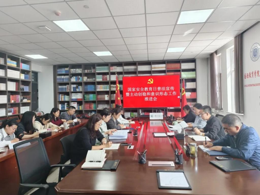 4月7日下午,在第十个全民国家安全教育日来临之际,国际教育与交流党总支为全面落实习近平总书记关于国家安全的重要指示,采取主题党日活动的形式,召开学习《中华人民共和国境内外国人宗教活动管理规定实施细则》专题会议暨主动创稳和意识形态工作推进会。