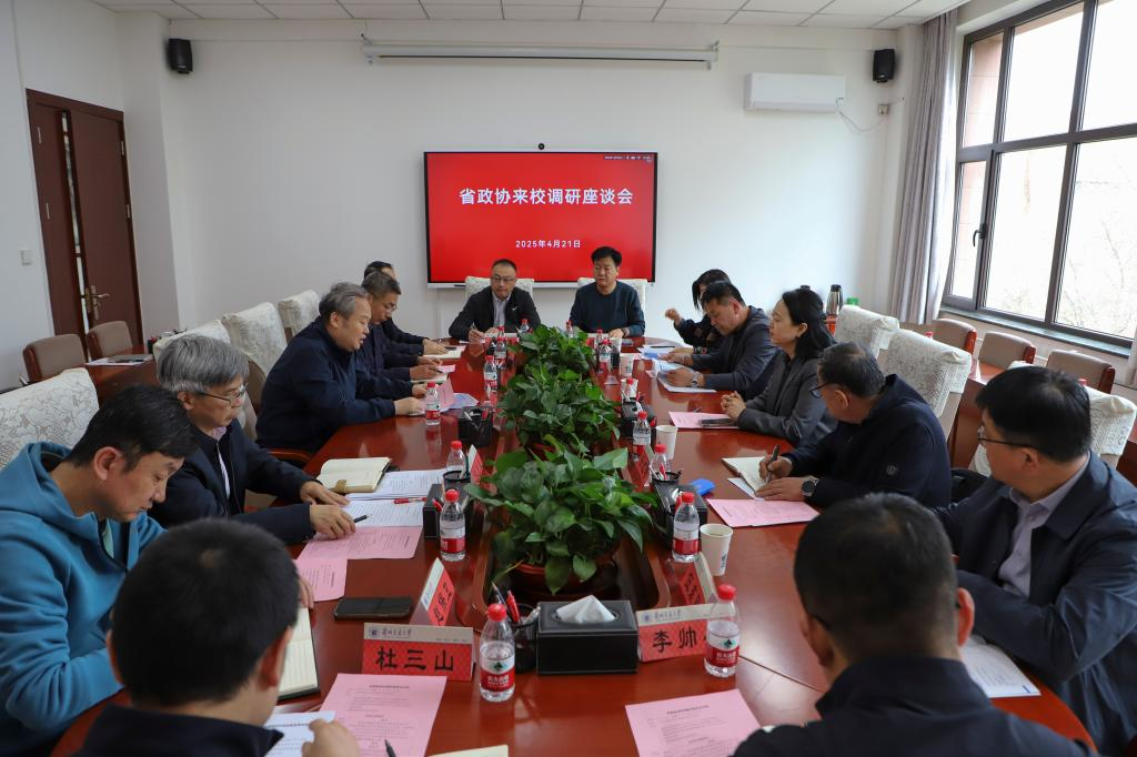 省政协港澳台侨和外事委员会办公室三级调研员冯天峰、酒泉市政协经济环境资源委员会主任云红琦、酒泉市政协经济环境资源委员会副主任伍东民、酒泉市政协经济环境资源委员会综合科科长景莉玲,学校党委统战部、社会服务与成果转化中心、研究生院、研究院、教务处、科技处、新能源与动力工程学院、国家绿色镀膜与装备工程技术研究中心负责同志参加调研座谈会。