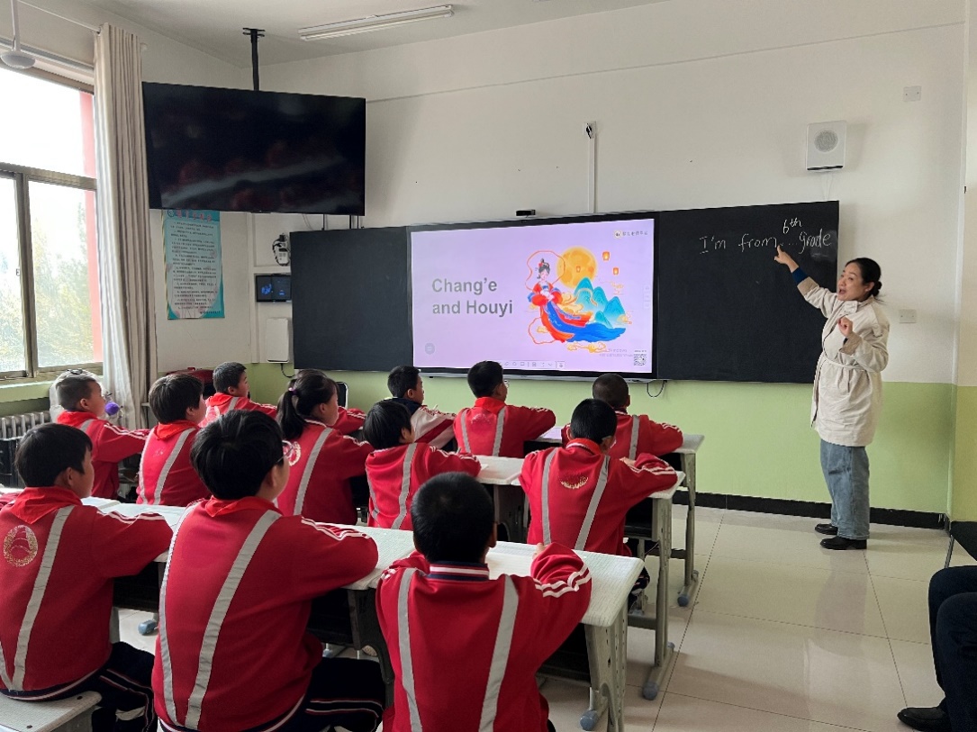 在教学互动环节,民建交大支部会员、外国语学院教师王文佳博士为三至六年级学生上了一堂特色英语课。课程以 “趣味驱动、读写并进” 为理念,融合外语学习与文化传承。学生们精神饱满、积极参与,课堂氛围热烈,教学效果显著。