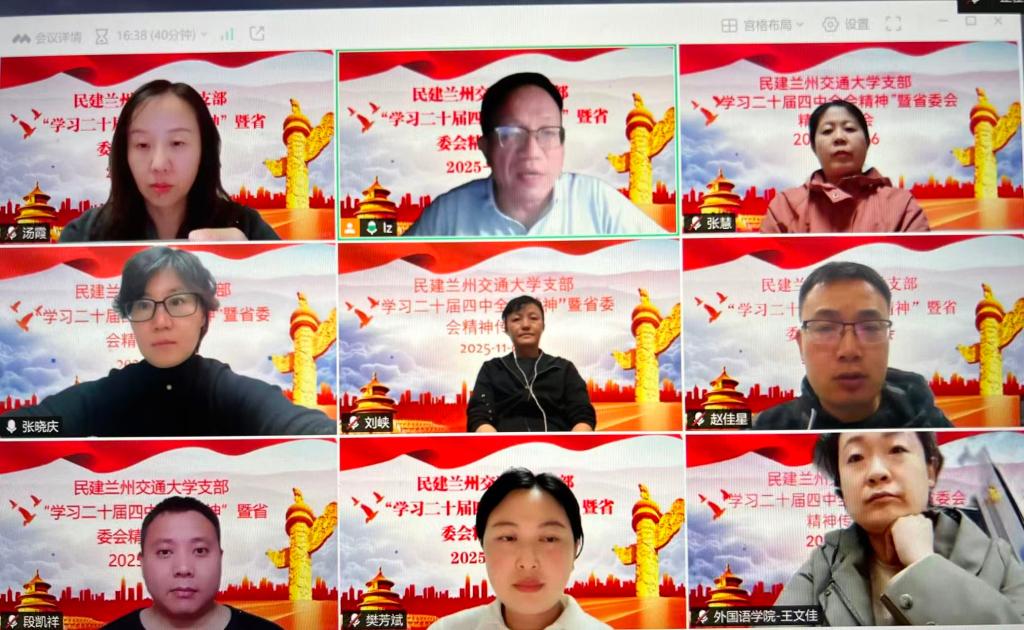 11月6日,民建兰州交通大学支部召开会议,传达学习中共二十届四中全会精神。会议解读学习了中国共产党第二十届中央委员会第四次全体会议公报,并结合民建交大支部工作开展交流。